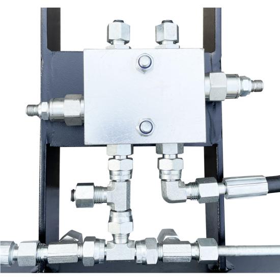 Sistema hidráulico: Uso de válvula de controle combinada multifuncional, com vedação cônica de 24°, melhora significativamente a confiabilidade do sistema hidráulico.